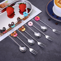 Cuchara de acero inoxidable 304, cuchara de dibujos animados para niños, tenedor, donut, cuchara de café, tenedor de fruta de tres dientes, tenedor de postre, cuchara